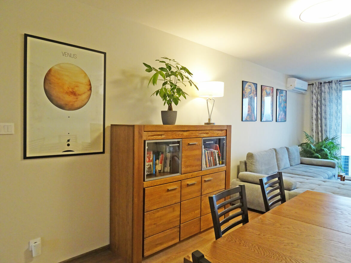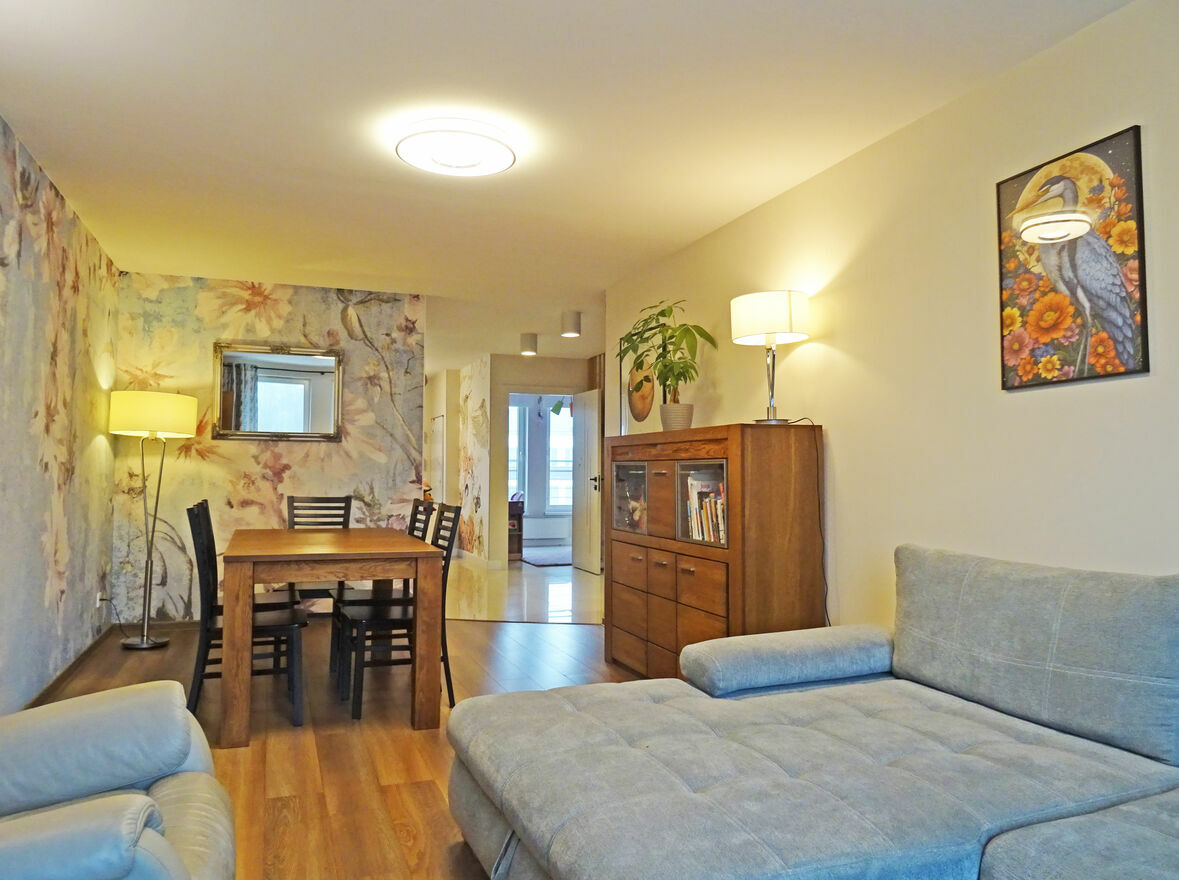Mieszkanie umeblowane, wyposażone w logotermę oraz centralę regulacji temperatury w lokalu.