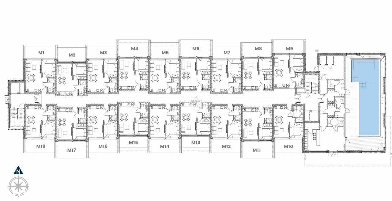 - Strefę SPA w budynku: całoroczny podgrzewany basen, sauna, siłownia, sala fitness.