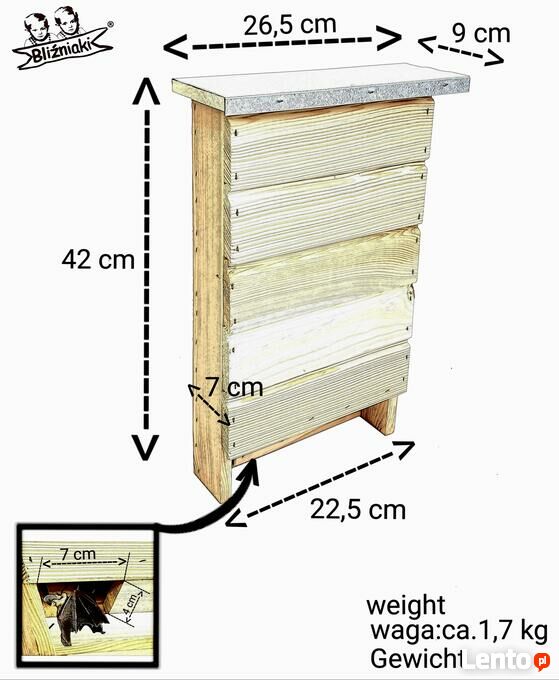 Model: BDN1 BPrzedmiotem aukcji jest drewniana budka dla pożytecznych zwierząt jakimi są nietoperze