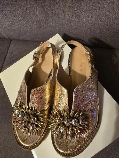 Mam do sprzedania sandały marki r.polański wykonane ze skóry naturalnej. Kolor miedziane, różowe złoto. Rozmiar 38.