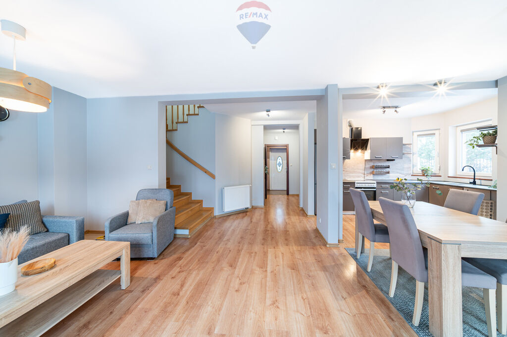 Dom o powierzchni 114,8 m² oferuje 5 pokoi (w tym 4 sypialnie) i jest
