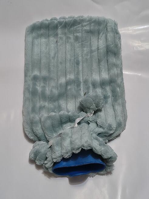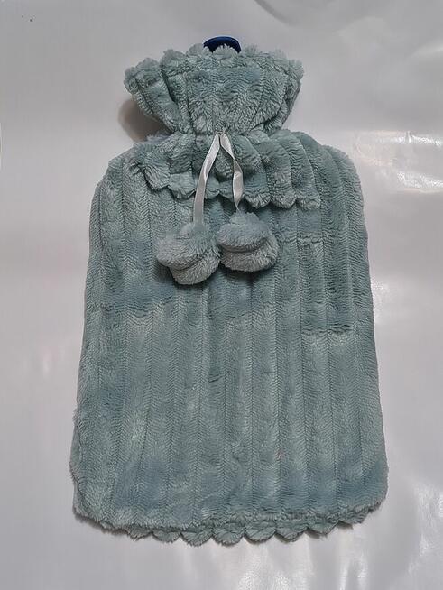 Nowy termofor gumowy z puszystym pokrowcem duży 2 l z zatyczką Szary