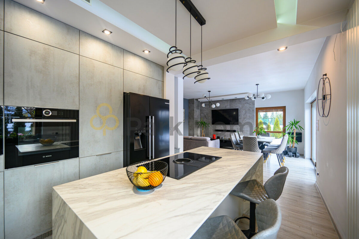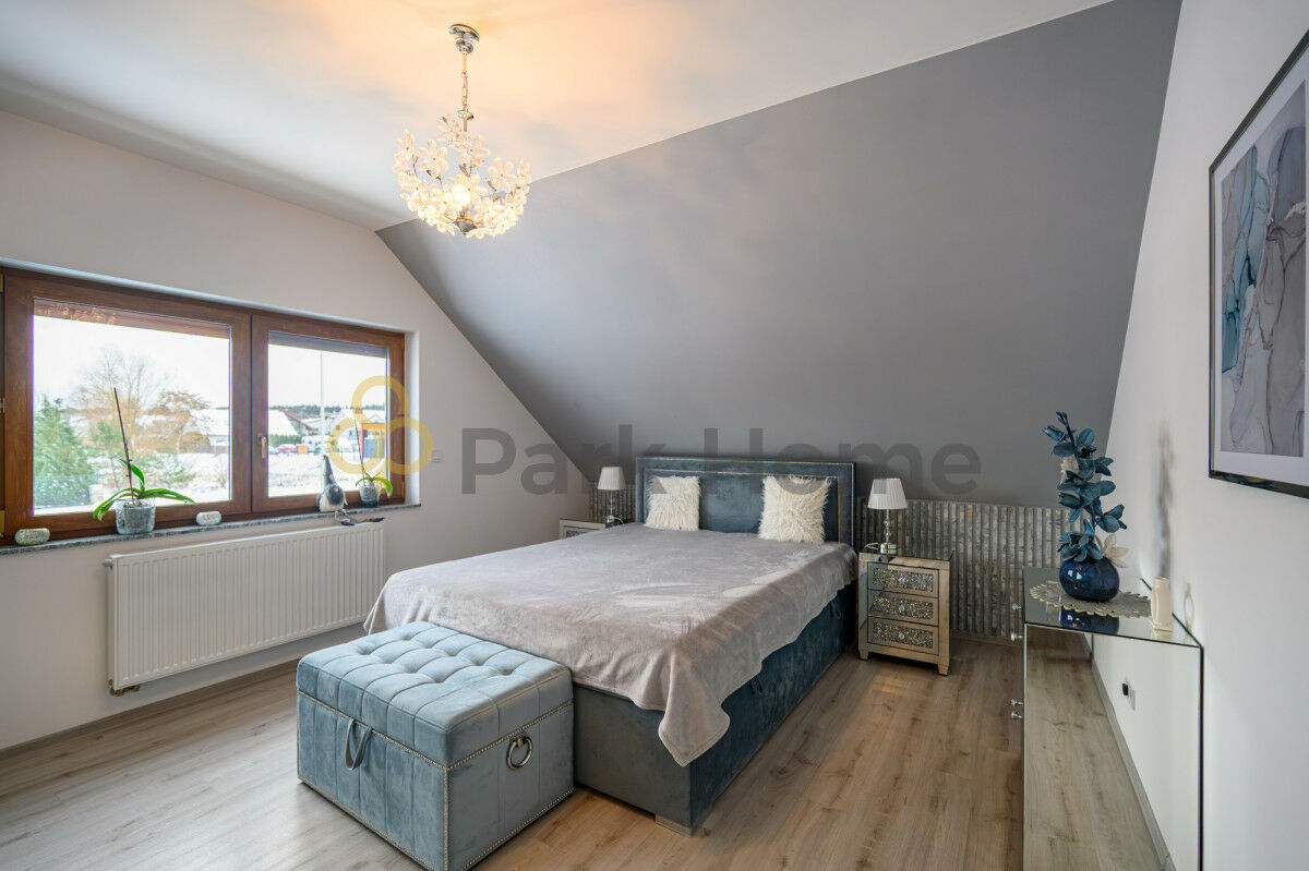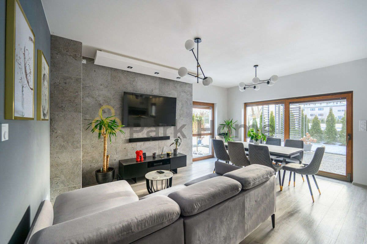 Dom został wybudowany w 2020 roku i wykończony w naprawdę wysokim standardzie. W cenie może pozostać zdecydowana większość wyposażenia, w tym wysokiej klasy meble marki Westwing, dzięki czemu całość tworzy spójną, elegancką i dopracowaną przestrzeń do życia.