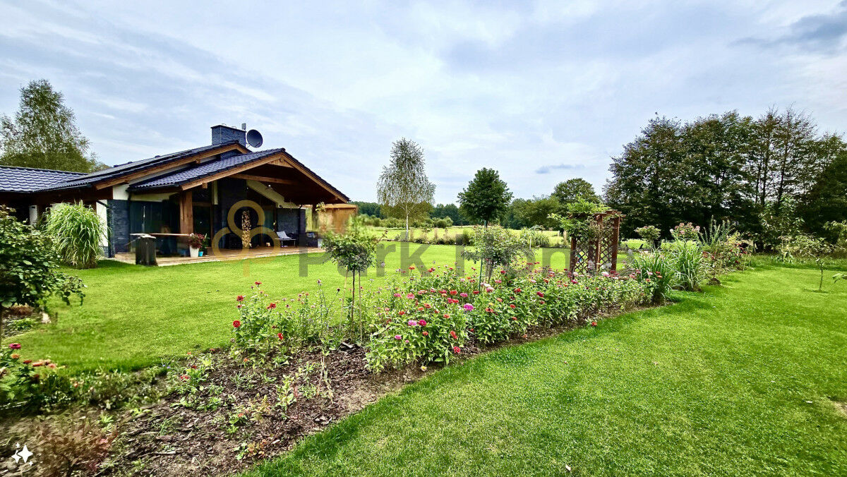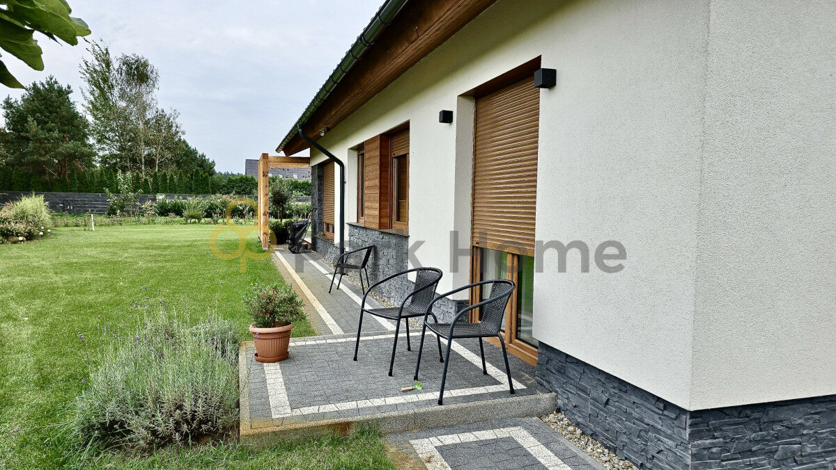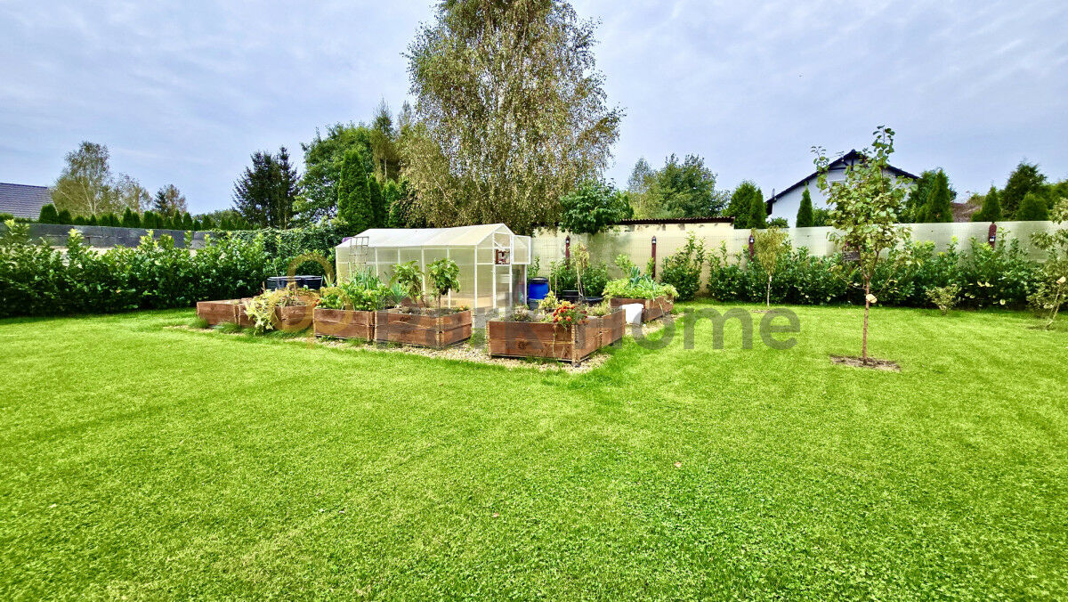 Otoczony zielonym ogrodem, ten dom stwarza unikalne miejsce, gdzie codzienne życie splata się z naturą. Ogród został podzielony na kilka części: warzywniaka w postaci podwyższonych skrzyń, szklarni (wymiary 2,5m x 4m) a także nasadzonych krzewów i drzewek owocowych oraz części rekreacyjnej trawnika. Dodatkowym atutem części ogrodowej jest automatyczne zasilanie 6-cio sekcyjnym nawodnieniem z możliwością rozbudowy na dalsze części ogrodu.