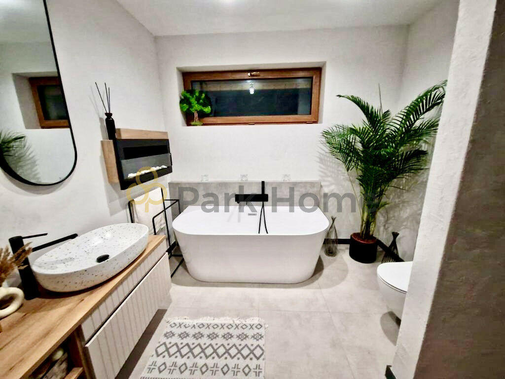 Pełne umeblowanie oraz trzyszybowy kominek dodaje mu charakteru, tworząc miejsce, które czeka na nowych właścicieli. Cały dom ma system monitorujący a aplikacja z nim powiązana sprawdza się idealnie gdy właściciela nie ma na miejscu.