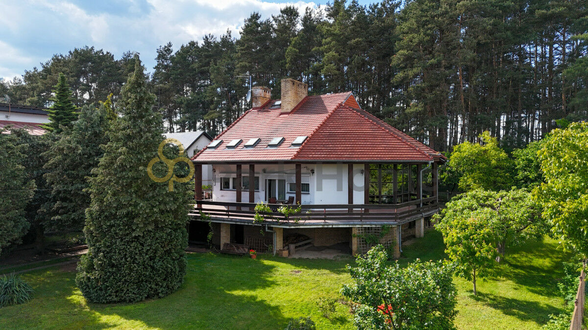 Do nieruchomości przynależy w pełni ogrodzona, zielona działka o powierzchni 1 664 m², częściowo zadrzewiona i dająca sporo możliwości zagospodarowania — np. pod wiatę, ogród, strefę wypoczynku czy dodatkowe miejsce do przechowywania. Z tyłu posesji znajduje się niewielki fragment lasu (ok. 1,23 ha) — dosłownie za płotem, co daje przyjemne poczucie kontaktu z naturą. Dom jest schowany w głębi działki, co zwiększa prywatność, a taras znajduje się wyraźnie powyżej poziomu drogi i jest zwrócony głównie od słonecznej strony południowej.