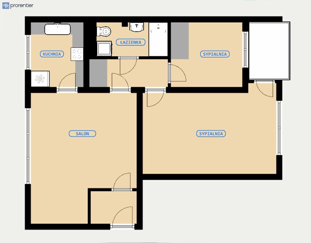 - Sypialnia z wyjściem na balkon o pow. ~14,00 m2
