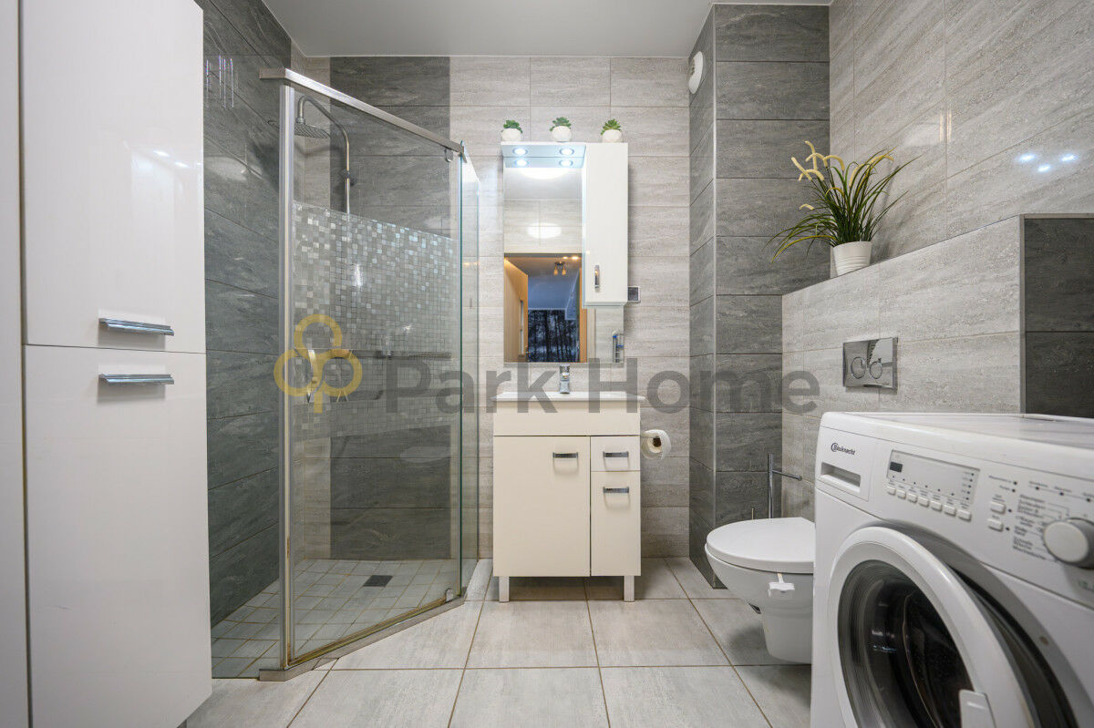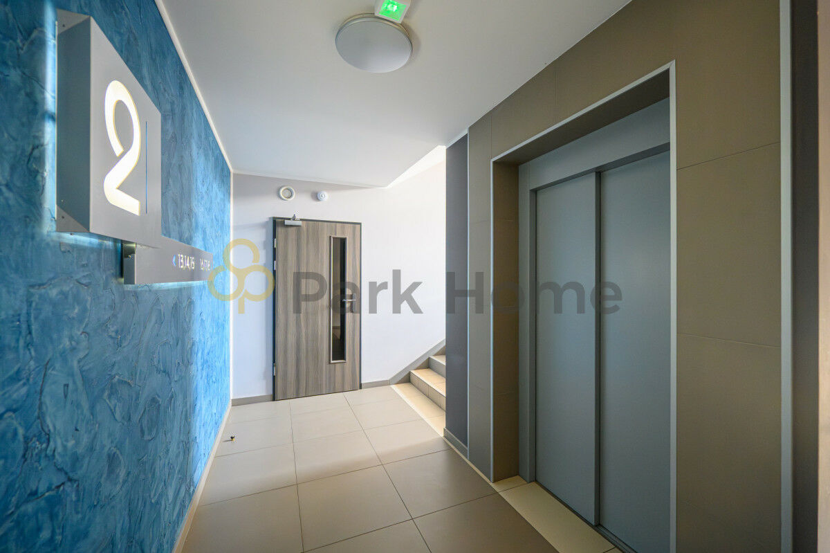 Na przedpokoju znajdują się pakowne szafy. Do mieszkania przynależy komórka lokatorska na poziomie minus 1, do której bezpośrednio można zjechać windą. W mieszkaniu jest również system centralnego ogrzewania, tzw. "logoterma". Mieszkanie jest w trakcie odświeżania.