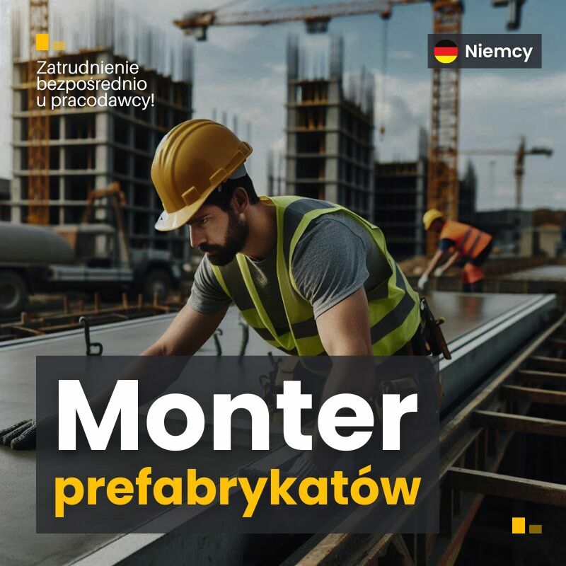 Prężnie rozwijającą się firma z siedzibą w Krakowie, specjalizującą się w branży budowlanej, poszukuje do swojego zespołu pracowników na stanowisko:Monter prefabrykatów betonowych
