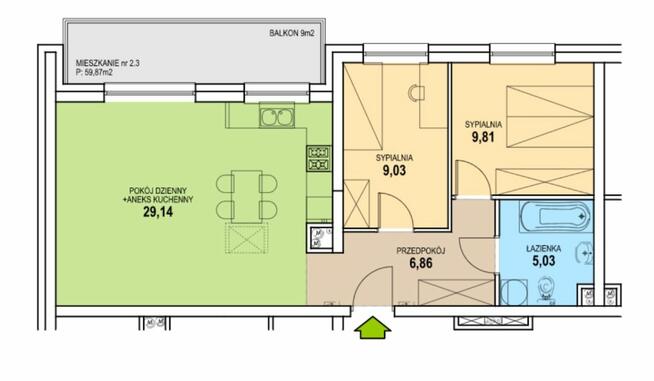 Oferujemy Państwu ostatnie w całym budynku, 2 pokojowe mieszkanie o powierzchni użytkowej 43.34 mkw. Zakończenie ...