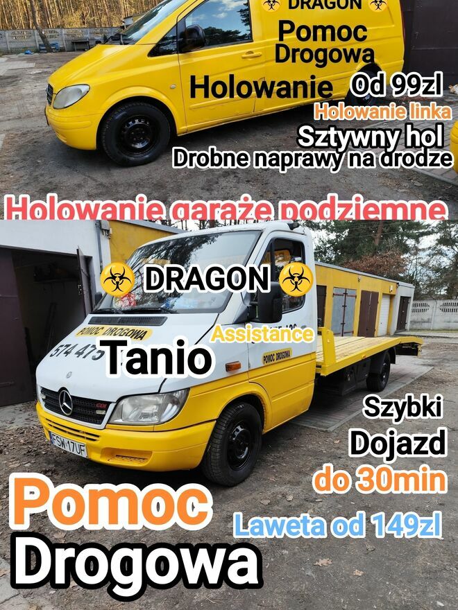 Holowanie z garaży podziemnych na sztywnym holu od 99-299zl