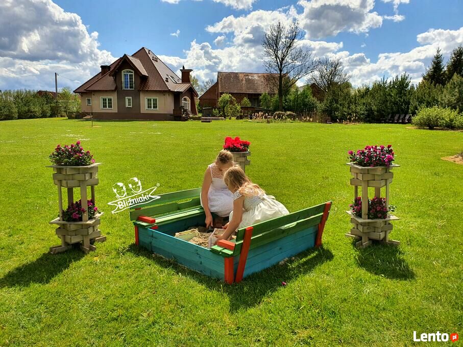 Piaskownica została wykonana w całości z drewna sosnowego