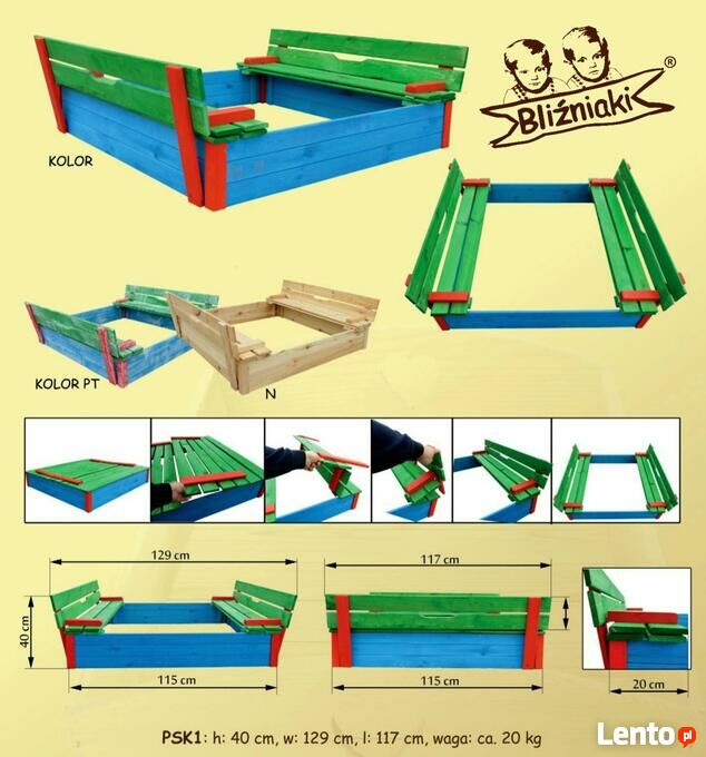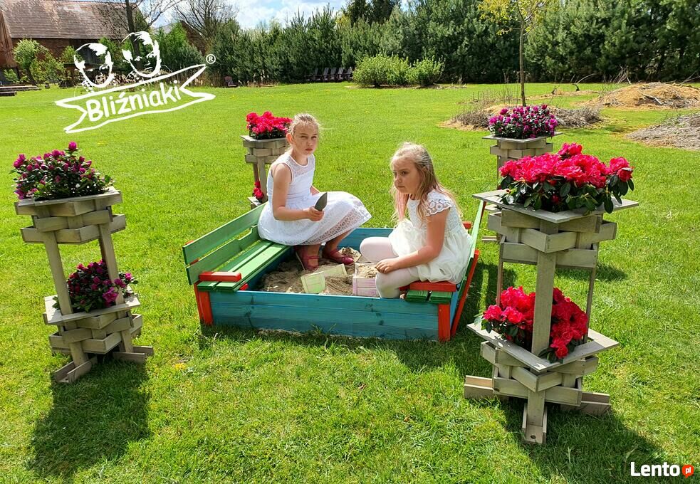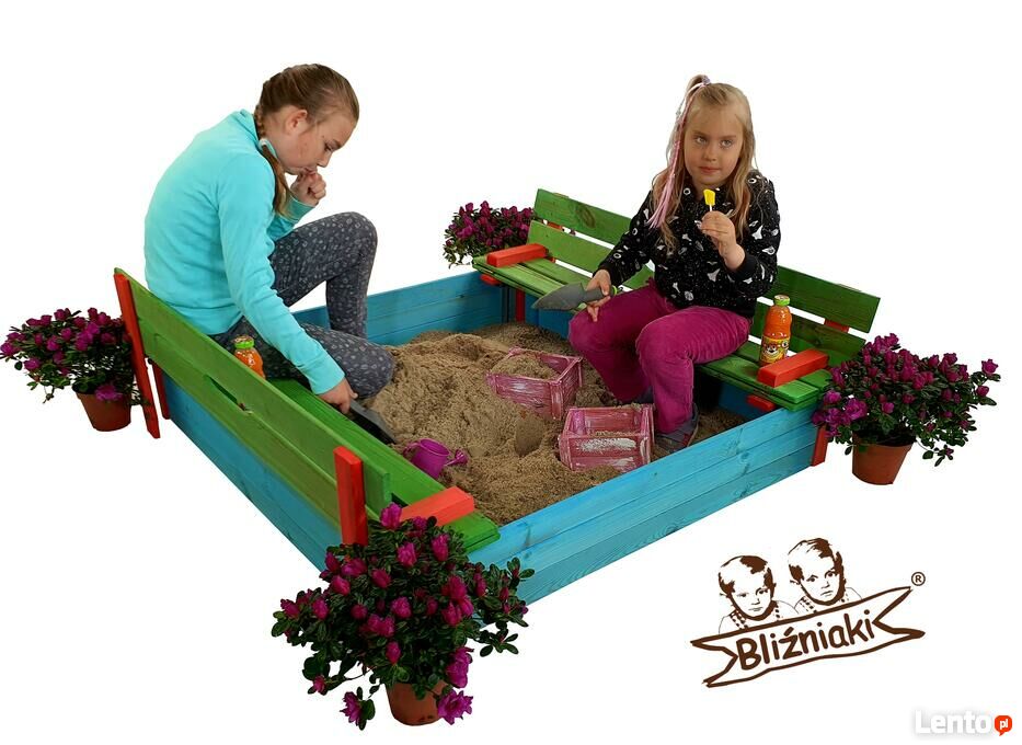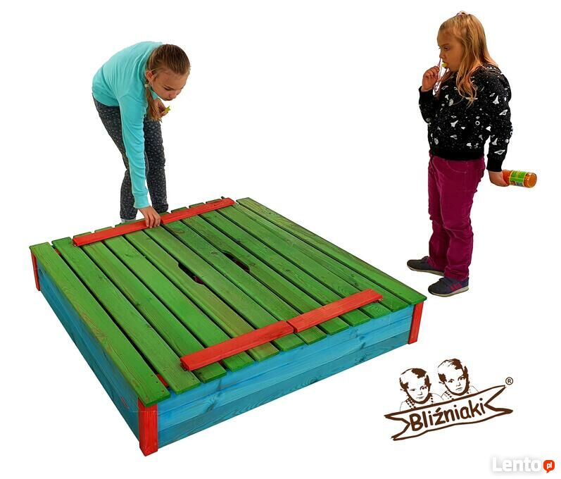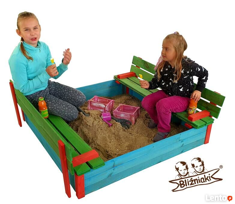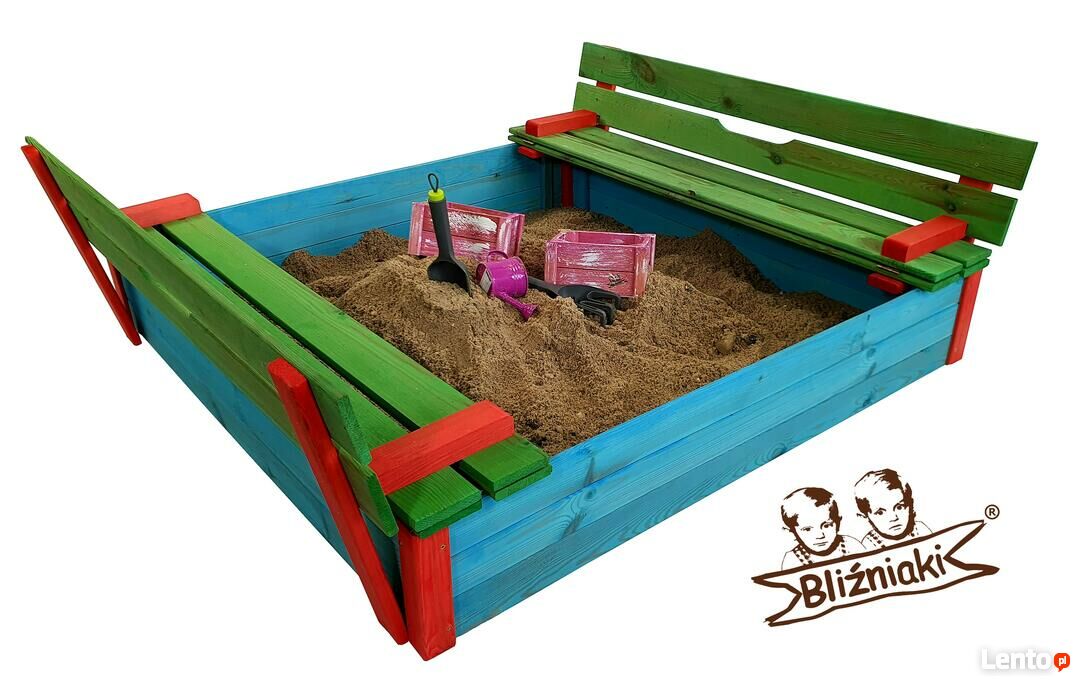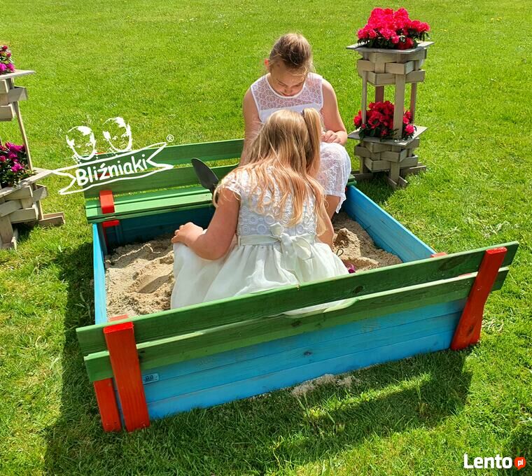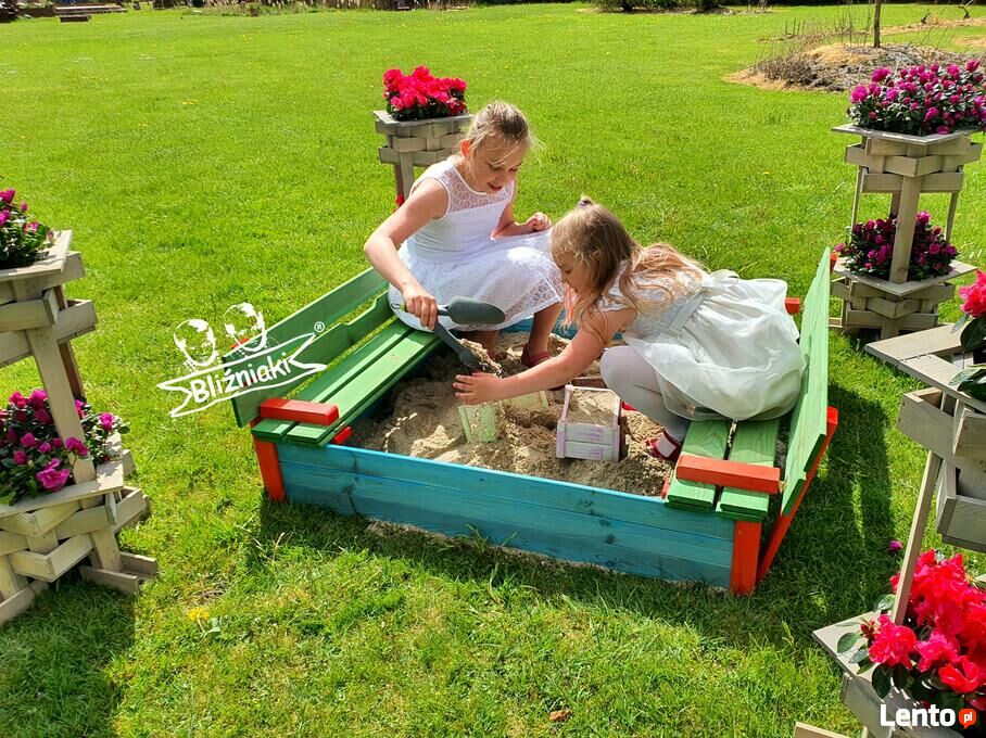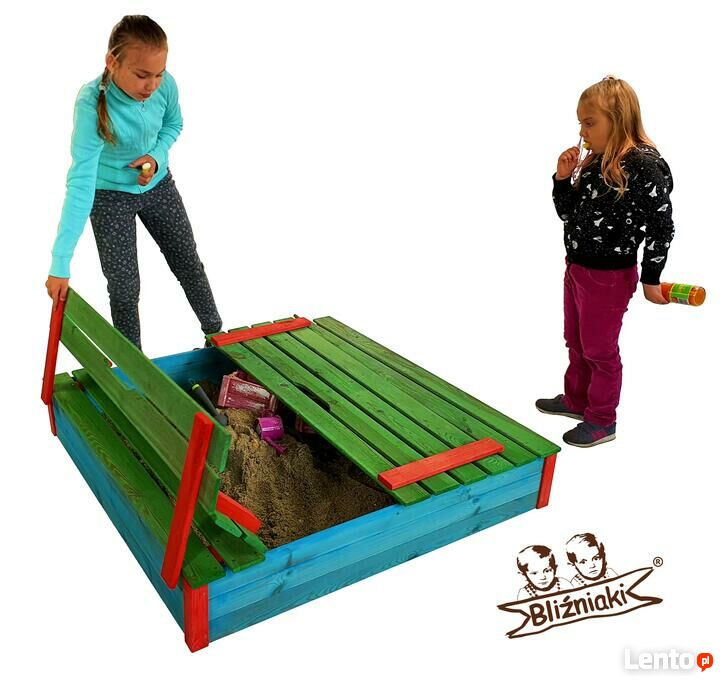 Piaskownica drewniana Zamykana Z Ławeczkami Kolorowa