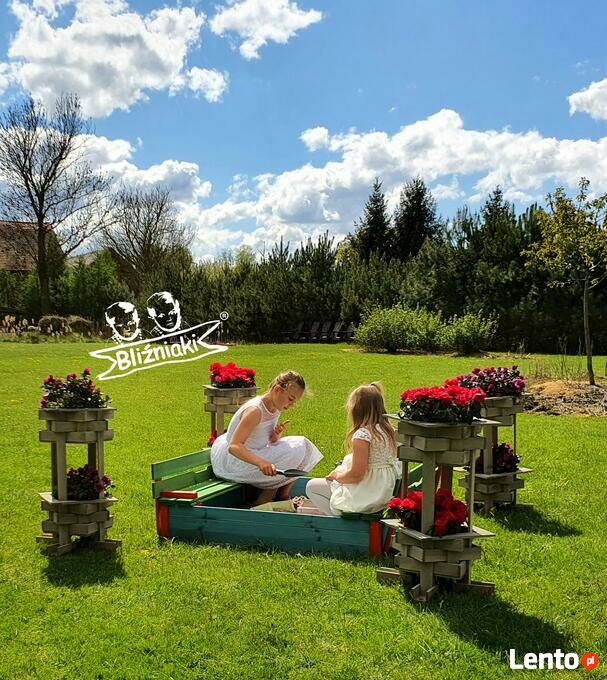 Piaskownica posiada dwie ławeczki