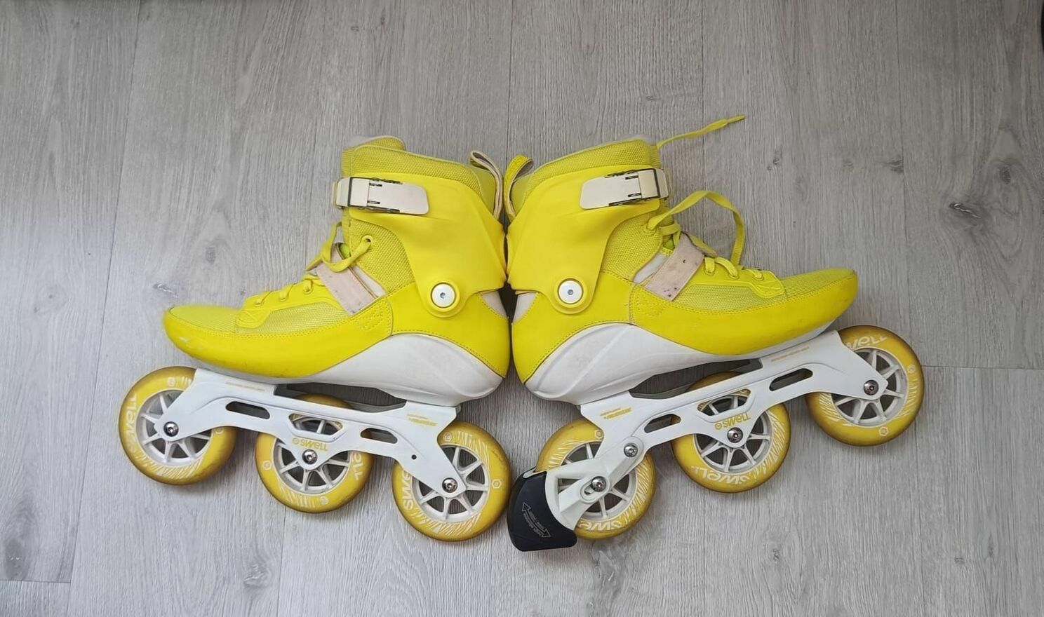Sprzedam profesjonalne rolki Powerslide Swell w jaskrawym, żółtym kolorze. To model stworzony do szybkiej jazdy fitnessowej i miejskiej, który łączy nowoczesny wygląd z wysoką wydajnością. Rolki są w bardzo dobrym stanie technicznym i wizualnym, zadbane i gotowe do sezonu.Specyfikacja Techniczna: