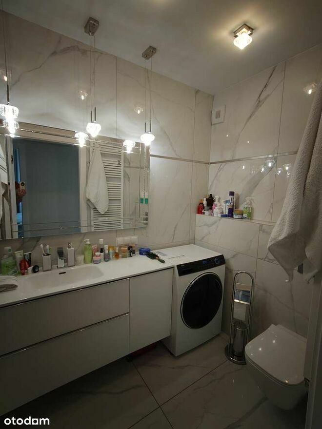 Wyposażenie: Całe wyposażenie mieszkania pozostaje w cenie – wystarczy się wprowadzić. Wysokiej jakości meble, tv, sprzęt AGD (lodówka, zmywarka, piekarnik, pralko-suszarka ).