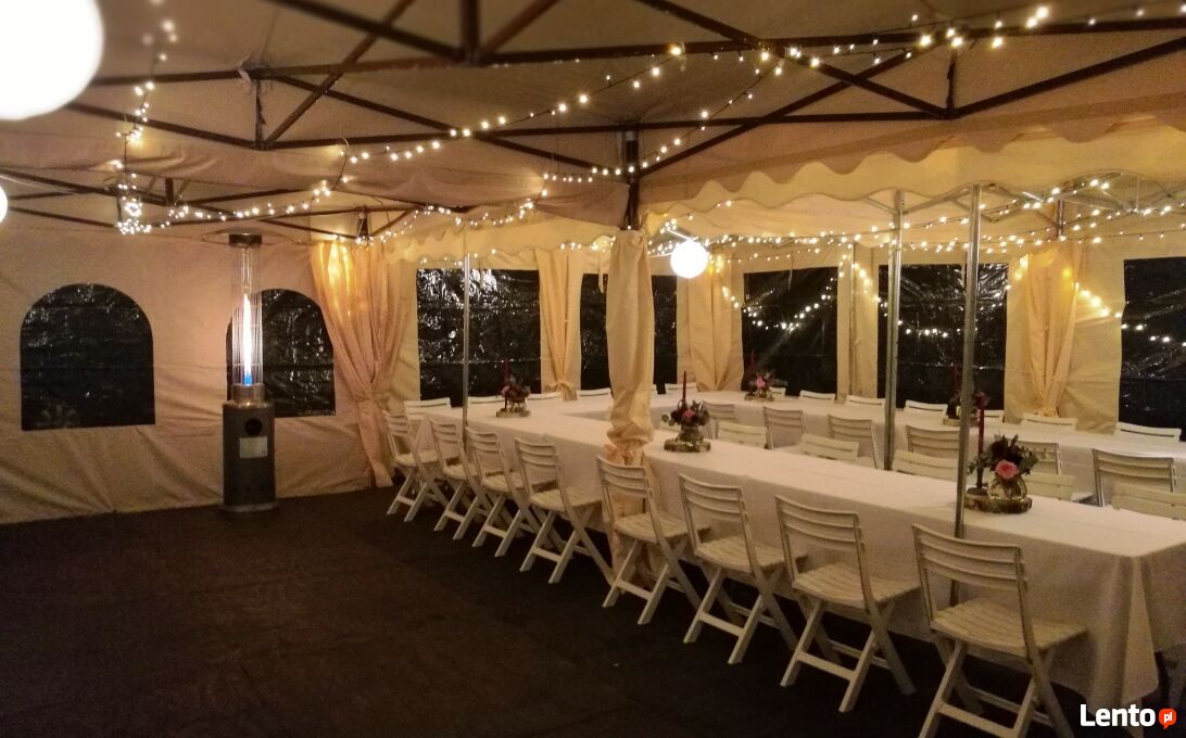 WYNAJEM NAMIOTÓW IMPREZOWYCHOferujemy namioty bankietowe do wynajęcia. Idealne na przyjęcie weselne w ogrodzie. Stabilna konstrukcja zapewni ochronę przed wiatrem, a ozdobna tkanina przed słońcem oraz ewentualnym deszczem. W ofercie również pozostałe wyposażenie:
